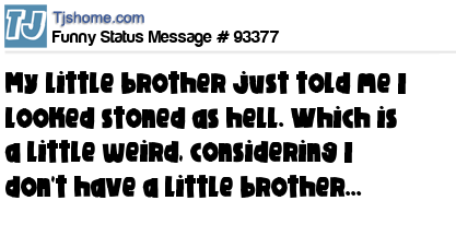 X My little brother just told me I looked stoned as hell. Which is a little weird, considering I don't have a little brother...
