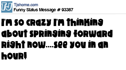 X I'm so crazy I'm thinking about springing forward right now....see you in an hour!