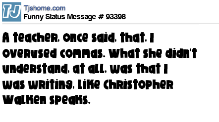X A teacher, once said, that, I overused commas. What she didn't understand, at all, was that I was writing, like Christopher Walken speaks.