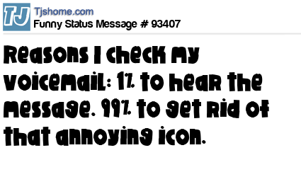 - # 164549 Reasons I check my voicemail... 1% to hear the message... 99% to get rid of that annoying icon.
