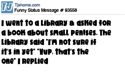 X says I went to a library & asked for a book about small pen!ses. The library said "I'm not sure if it's in yet" "Yup, that's the one" I replied