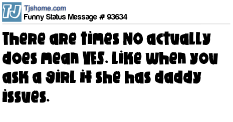 X There are times NO actually does mean YES. Like when you ask a girl if she has daddy issues.