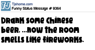 X drank some Chinese beer, ...now the room smells like fireworks.