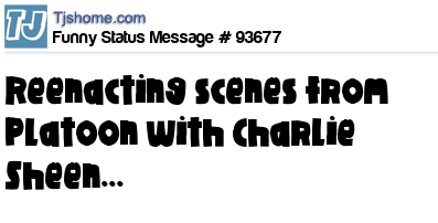 - # 94619 I'm sooo tired I spent all night reenacting scenes from Platoon with Charlie Sheen