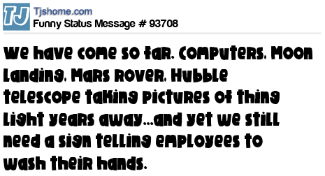 X We have come so far. Computers, Moon landing, Mars rover, Hubble telescope taking pictures of thing light years away...and yet we still need a sign telling employees to wash their hands.