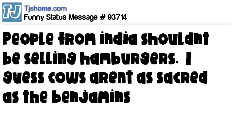 X is people from india shouldnt be selling hamburgers. I guess cows arent as sacred as the benjamins