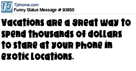 - # 93800 Vacations are a great way to spend thousands of dollars to stare at your phone in exotic locations.