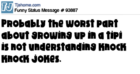 X says Probably the worst part about growing up in a tipi is not understanding knock knock jokes.