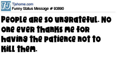 X People are so ungrateful. No one ever thanks me for having the patience not to kill them.