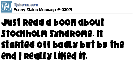 - # 193344 I just read a book about Stockholm Syndrome. It was terrible at first but by the end I kind of liked it.