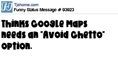 - # 28011 I wish Google Maps had an "Avoid Ghetto" routing option.