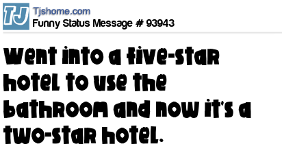 X Went into a five-star hotel to use the bathroom and now it's a two-star hotel.