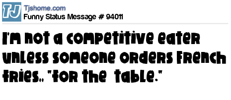 X I'm not a competitive eater unless someone orders French fries,, "for the table."