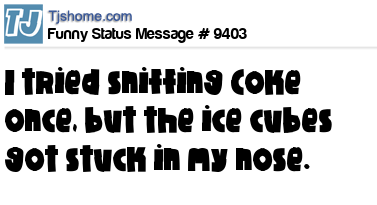 - # 2834 tried snorting coke today, but the ice cubes got stuck in his/her nose!