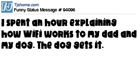 - # 108931 I spent an hour explaining how WiFi works to my dad and my dog... The dog gets it.
