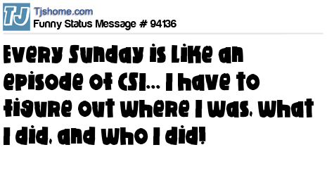 X  Every Sunday is like an episode of CSI... I have to figure out where I was, what I did, and who I did!