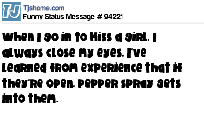 X says When I go in to kiss a girl, I always close my eyes. I've learned from experience that if they're open, pepper spray gets into them.