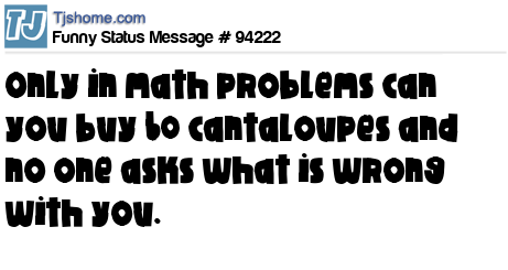 - # 119036 Only in math problems can you buy 60 cantaloupes and nobody asks what the hell is wrong with you.