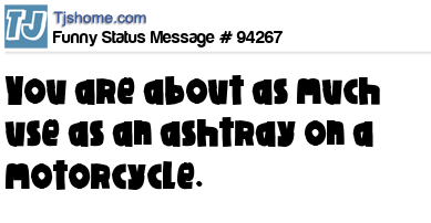 - # 207820 You’re about as useful as an ashtray on a motorcycle.