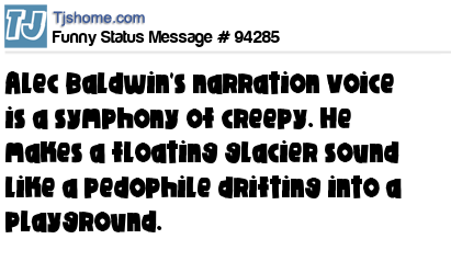 X Alec Baldwin's narration voice is a symphony of creepy. He makes a floating glacier sound like a pedophile drifting into a playground.