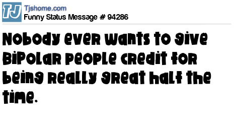 X Nobody ever wants to give BiPolar people credit for being really great half the time.