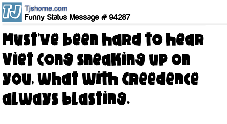 X Must've been hard to hear Viet Cong sneaking up on you, what with Creedence always blasting.
