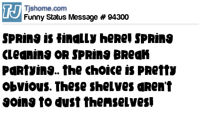 X Spring is finally here! Spring Cleaning or Spring Break partying.. the choice is pretty obvious. These shelves aren't going to dust themselves!
