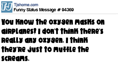 X says You know the oxygen masks on airplanes? I don't think there's really any oxygen. I think they're just to muffle the screams.
