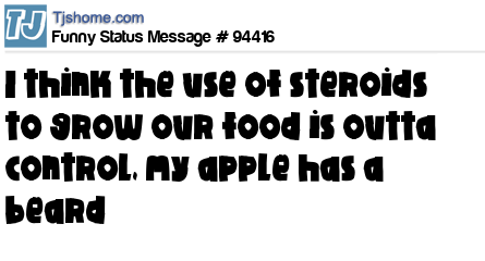X is I think the use of steroids to grow our food is outta control, my apple has a beard