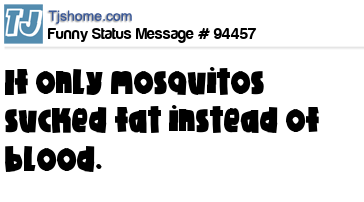 - # 21255 I wish mosquitos sucked fat instead of blood.