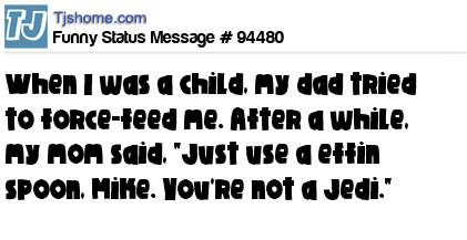 - # 125359 When I was a child, my dad tried to force-feed me. After a while, my mom said, "Just use a spoon, Mike. You're not a Jedi."
