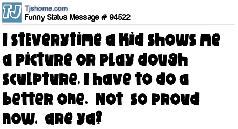 X is I stEverytime a kid shows me a picture or play dough sculpture, I have to do a better one. Not so proud now, are ya?