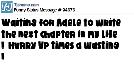 X is Waiting for Adele to write the next chapter in my life !  Hurry Up times a wasting !