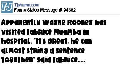 X is Apparently Wayne Rooney has visited Fabrice Muamba in hospital. "It's great, he can almost string a sentence together" said Fabrice.....