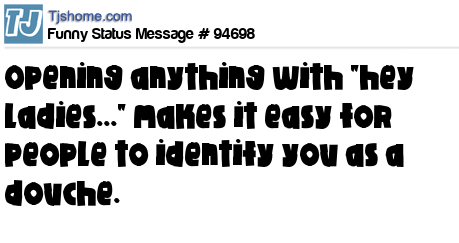 X opening anything with "hey ladies..." makes it easy for people to identify you as a douche.