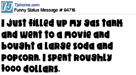 X I just filled up my gas tank and went to a movie and bought a large soda and popcorn, I spent roughly 7000 dollars.
