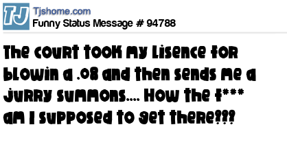 X is The court took my lisence for blowin a .08 and then sends me a jurry summons.... How the f*** am I supposed to get there???