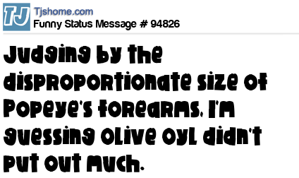 - # 186104 Judging from the size of Popeye's forearms, I'm guessing that Olive Oyl didn't put out much.