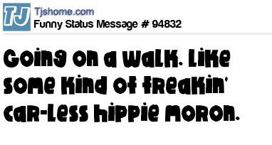 X Going on a walk. Like some kind of freakin' car-less hippie moron.