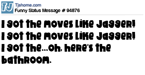 X I got the moves like Jagger! I got the moves like Jagger! I got the...oh, here's the bathroom.