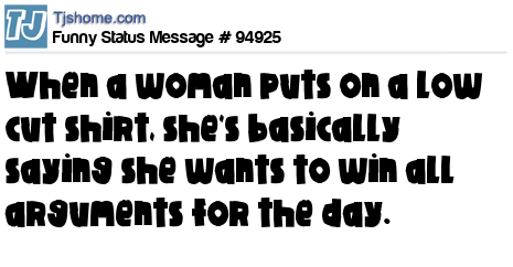 X says When a woman puts on a low cut shirt, she's basically saying she wants to win all arguments for the day.