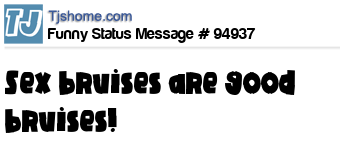 - # 150127 I pretend my bruises are sex bruises instead of I tripped over my cat while trying a new dance move bruises.