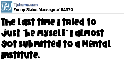 X is The last time I tried to just "be myself" I almost got submitted to a Mental Institute.