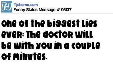 X says One of the biggest lies ever: The doctor will be with you in a couple of minutes.