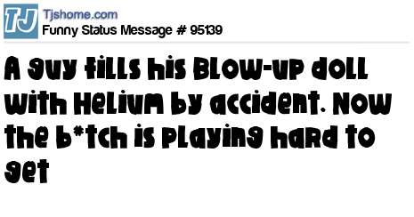 - # 52638 Sometimes I fill up my blow up doll with helium so its playing hard to get.