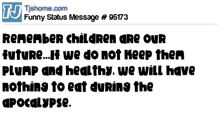 X Remember children are our future...If we do not keep them plump and healthy, we will have nothing to eat during the apocalypse.