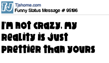 - # 41753 Im not crazy, my reality is just different then yours. :)