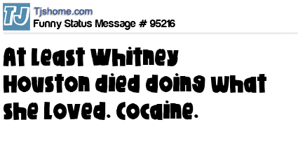X At least Whitney Houston died doing what she loved. Cocaine.