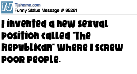 X  I invented a new sexual position called "The Republican" where I screw poor people.