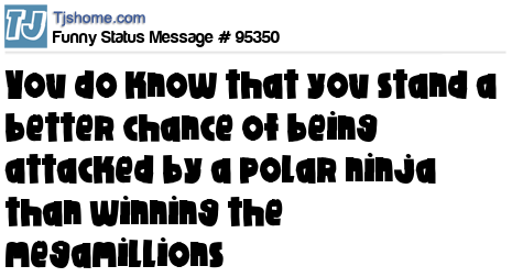 X says You do know that you stand a better chance of being attacked by a polar ninja than winning the megamillions